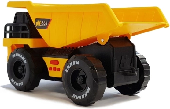 Das Fahrzeug hat einen Reibungsantrieb – zurückziehen, loslassen und die Fahrt beobachten. Am Chassis finden Sie 4 Tasten mit Sounds (Hupe, Heben der Mulde, Rückwärtsfahren und weitere) sowie vordere Lichter für noch mehr Effekt. Dank sicherer Materialien und der Zertifizierung CE/EN 71 ist es ideal für Kinder ab 3 Jahren.