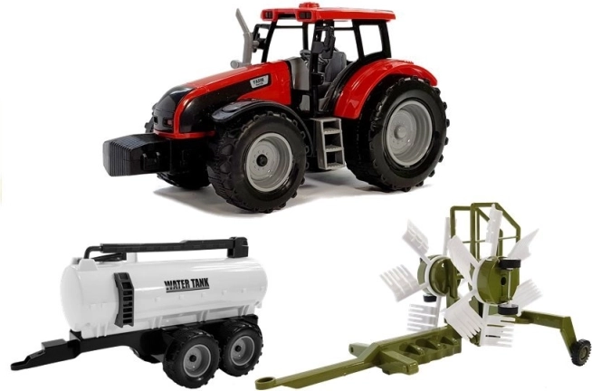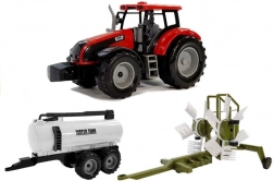 Das Set Traktor + Schwader + Zisterne ist ideal für Kinder, die landwirtschaftliche Technik lieben. Der rote Traktor mit realistischer Kabine zieht entweder den grünen rotierenden Schwader oder die weiße Wasserzisterne mit großen Rädern für leichtes Manövrieren. So können Kinder ihren eigenen Hof erschaffen und verstehen, wie landwirtschaftliche Maschinen funktionieren.