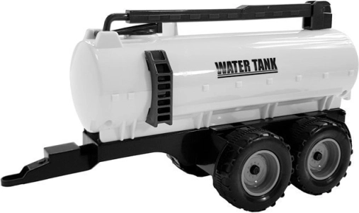 Weißer Zisternenanhänger mit robusten Rädern für eine ruhige Fahrt. Perfekt für realistische Bewässerungsszenarien auf dem Bauernhof.