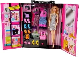 Der rosa Kofferschrank für Puppen verwandelt jedes Spiel in eine Modenschau. Aufklappbare Schrankflügel, durchdachte Innenaufteilung und zahlreiche Accessoires ermöglichen Kindern unendliche Stylings. Die Puppe hat langes, dichtes blondes Haar und ein dezentes Make-up – der Spaß mit Kämmen und Umziehen kann beginnen.