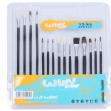 Entdecken Sie die Vielseitigkeit des Pinselsatzes 15 Stück für Ihre künstlerischen Projekte mit verschiedenen Größen für flache und runde Striche.
