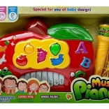 Das elektronische Apfel-Klavier ist das ideale Spielzeug für die ersten Schritte in die Welt der Musik. Kinder können auf 8 Tasten spielen, in das mitgelieferte Mikrofon singen und dank des beiliegenden Klinke-zu-Klinke-Kabels Lieblingslieder vom Telefon abspielen. Das farbenfrohe Design und die hochwertige Verarbeitung unterstützen Kreativität und Spielfreude.
