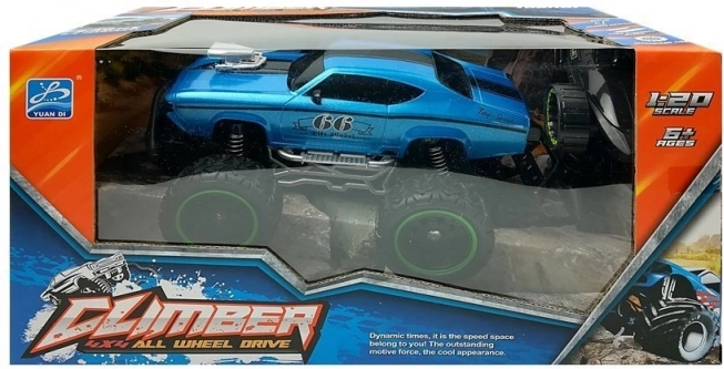 Der RC-Geländewagen mit hohen Rädern ist für eine stabile Fahrt in unterschiedlichem Terrain konzipiert. Große Gummireifen bieten hervorragenden Grip und die robusten Stoßdämpfer helfen, Unebenheiten ohne Kontrollverlust zu überwinden. Das realistische Design im Maßstab 1:20 begeistert kleine und große Offroad-Fans.
