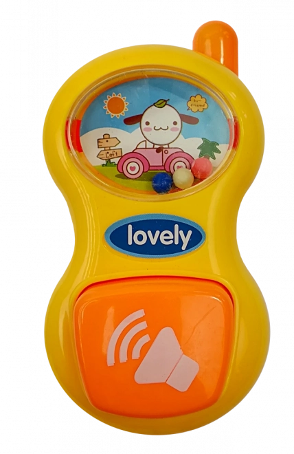 Enthalten sind ein abnehmbares Kindertelefon und drei Einlegeformen (Kreis, Quadrat, Dreieck) zur Förderung von Logik und Auge-Hand-Koordination.