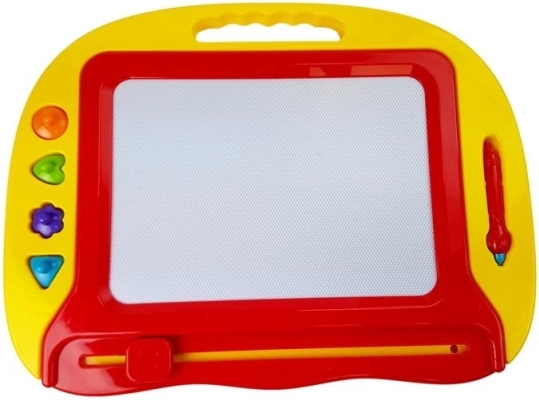 Die rote magnetische Tafel ist das ideale Spielzeug für kleine Künstler. Dieses unterhaltsame Spielzeug ermöglicht es Kindern, endlos kreativ zu sein und einfach Zeichnungen zu löschen. Enthält: