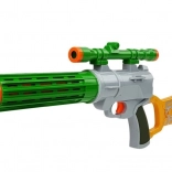 Spielzeuge, die Waffen imitieren, sind Gegenstände, die bei Jungenspielen sehr häufig sind. Sie bereichern das Spiel und helfen zugleich, verschiedene Spielszenarien zu entwickeln. Es sind auch Elemente, die das Gefühl fördern, tapfere Kämpfer und Helden zu sein, die gegen das Verbrechen kämpfen. Das vorgestellte Schaumstoffgewehr für Geschosse wird Jungen im Vorschul- und Grundschulalter sicherlich stundenlang beschäftigen und ihnen ermöglichen, viele interessante Spiele zu veranstalten, zu denen ihre Fantasie Ideen liefert.