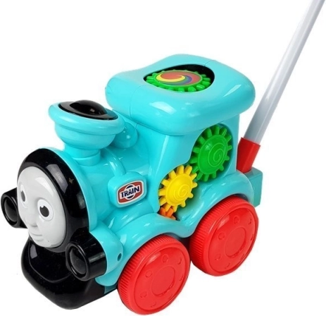 Der Zug pfeift in Bewegung und spielt fröhliche Melodien, die die Aufmerksamkeit der Kinder halten und die Sinneswahrnehmung fördern.