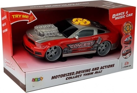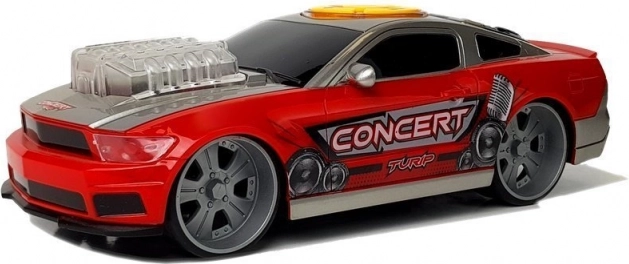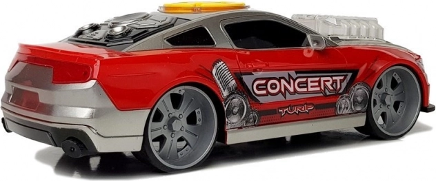 Das DJ-Auto verbindet Spaß mit Musik und Lichtern. Das Bedienfeld mit gelben Tasten auf dem Dach startet verschiedene Effekte, während das Motormodell auf der Haube nach Aktivierung in unterschiedlichen Farben erstrahlt. Der sportliche Look wird durch auffällige Aufkleber und einen „Sportauspuff“ abgerundet.