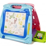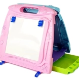 Diese vielseitige Kinder-Tafel bietet zwei Flächen für endloses Malen und Schreiben: eine Seite für abwischbare Marker, die andere für magnetisches Zeichnen mit Stylus. Kinder können jederzeit zu ihren Bildern zurückkehren oder sie mit einem Zug schnell per Schieberegler löschen. Die leichte Konstruktion mit praktischem Griff und zwei seitlichen Schubladen hält alle Utensilien griffbereit.