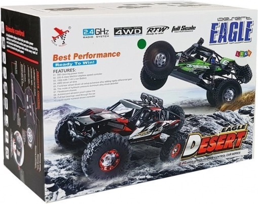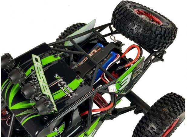Dieses robuste RC-Fahrzeug ist für schnelle Fahrten auf Schotter, Gras und Erde gebaut. Dank 4x4-Antrieb, großem Federweg und unabhängiger Aufhängung meistert es Unebenheiten mühelos, während der leistungsstarke Motor und der niedrige Schwerpunkt bei hohen Geschwindigkeiten bis zu 30 km/h für Stabilität sorgen.