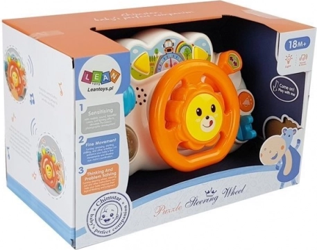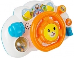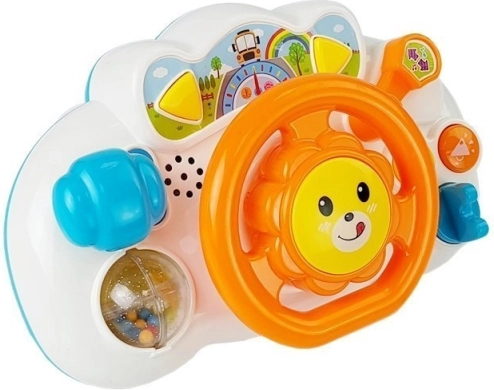 Das Spielzeug besteht aus einer Vielzahl interaktiver Elemente: ein Schalthebel mit drei Stufen und Tick-Geräusch, eine bewegliche Kugel mit Rascheln und Perlen, ein frei drehbares Lenkrad mit Klappern, zwei Tasten mit Musik und Soundeffekten, Starten mit Schlüssel inklusive Motorgeräusch und wechselndem Licht sowie ein verstellbarer Spiegel zum Trainieren der Orientierung.
