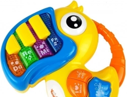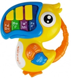 Klavier und Gitarre in Form von Papagei und Fisch helfen Kindern, die Welt all ihrer Sinne zu entdecken - Sehen, Hören und Berühren. Dank vielfältiger Funktionen und buntem Design lernen Kinder, neue Klänge, Farben und Formen zu erkennen.