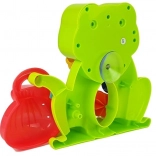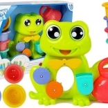 Bunter Frosch mit drehbaren Elementen, die das Wasser in Bewegung setzen und Augen drehen.