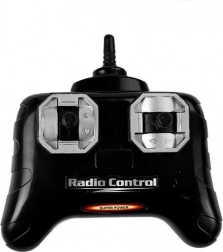 Die elegante schwarze Fernbedienung mit ergonomischen Griffen ermöglicht eine einfache Steuerung mit zwei Joysticks für präzise Bewegungen.