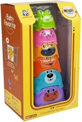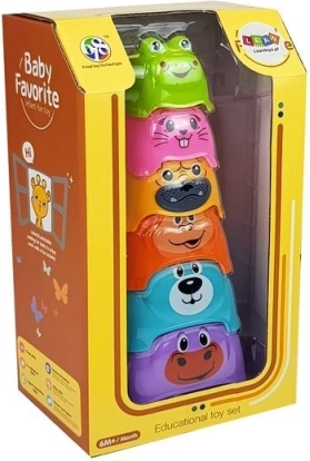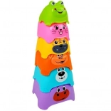Die bunte Pyramide ist ein Spielzeug, das hervorragend die Entwicklung Ihres Kindes unterstützt. Es enthält Bauklötze in verschiedenen Farben, die mit Tiermotiven bedruckt sind. An der Spitze der Pyramide befindet sich der kleinste Block in Form eines Frosches. Die Bauklötze sind aus sicherem, ungiftigem Material hergestellt, das robust und langlebig ist.