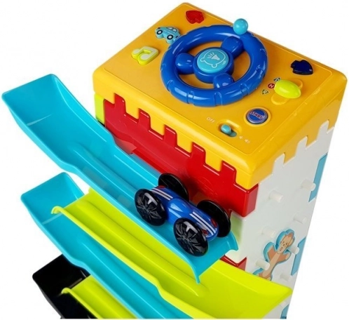 Kinder lernen, Formen zu erkennen, ein Auto auf einer Hindernisbahn zu manövrieren und mit interaktiven Elementen zu experimentieren. Dieses Spielzeug bietet verschiedene Spielmöglichkeiten, die die Entwicklung verschiedener Fähigkeiten unterstützen. Interaktives Lenkrad mit Ton- und Lichteffekten ermöglicht es Kindern, Richtungen zu lernen und ihre Vorstellungskraft durch das Nachspielen alltäglicher Situationen zu entwickeln.