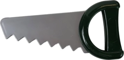 Säge, Hammer, Zange, Schraubendreher, Schlüssel, Schrauben, Muttern und Plättchen zum Verschrauben – alles aus robustem Kunststoff ohne scharfe Kanten.
