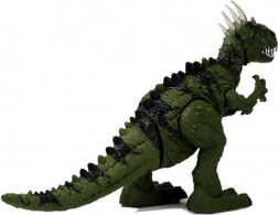 Der Dinosaurier bewegt sich selbstständig vorwärts, dreht den Kopf, öffnet das Maul und brüllt wie ein echtes Raubtier. Das farbige Unterleuchten der Schuppen am Kopf verleiht jeder Szene zusätzliche Spannung.