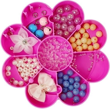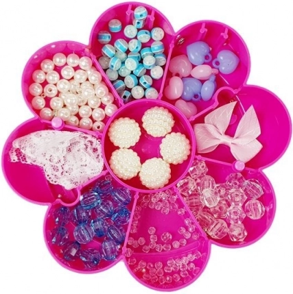 .Jetzt können Sie alle Perlen an einem Ort aufbewahren und die Box jederzeit öffnen, um Ihre eigenen handgefertigten Schmuckstücke zu kreieren. Die Box enthält zudem einen Spiegel, in dem Sie Ihre Kreationen bewundern oder Ihre Schönheit verschönern können. Kreieren Sie Ihren eigenen Stil! Sicher wird Sie so manche Freundin fragen, woher Sie dieses schöne Armband oder den Anhänger haben. Die Box in Rosa-Weiß hat drei etagenförmige Ebenen in Blumenform, in denen Sie Ihre Perlen aufbewahren können. Auf dem Deckel befindet sich ein hübsches Herz – ein Schmuckstück für jedes Mädchenzimmer.