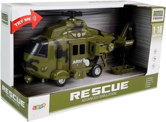 Entdecken Sie die Welt der Rettungs- und Militärmissionen mit dem detailreich gestalteten Hubschrauber im Maßstab 1:16. Die authentische grün-schwarze Tarnung mit ARMY-Aufschrift, drehbare Rotoren und funktionale Räder unterstützen realistisches Spiel, während Front- und Heckbeleuchtung sowie Soundeffekte Kinder direkt ins Geschehen ziehen.
