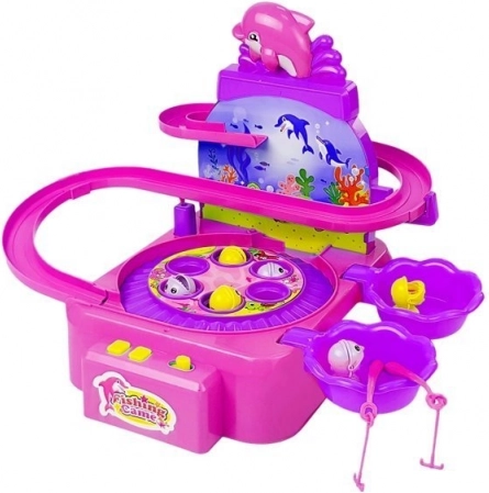 Das rosa Angelspiel ist ein klassisches Geschicklichkeitsspiel, das Reflexe, Geduld und Konzentration trainiert. Nach dem Einlegen der Batterien setzt sich der Teich in Bewegung, und Fische sowie Entchen öffnen und schließen ihre Mäulchen – eure Aufgabe ist es, sie geschickt mit der Angel oder dem Netz zu fangen. Ideal für zwei Kinder, macht aber auch allein großen Spaß.