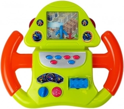 Mit Hilfe von Knöpfen und Hebeln verbessern Kinder ihre Koordinationsfähigkeiten. Das interaktive Lenkrad bietet verschiedene Spielszenarien und entwickelt das Wissen der Kinder über die Welt.
