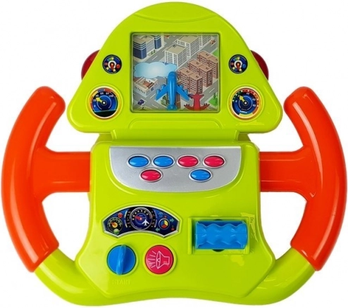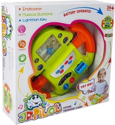 Das Lenkrad in Grün-Orange-Kombination mit realistischen Accessoires simuliert das Gefühl eines Piloten im Cockpit. Es enthält interaktive Elemente, die die motorischen Fähigkeiten und die Vorstellungskraft fördern.