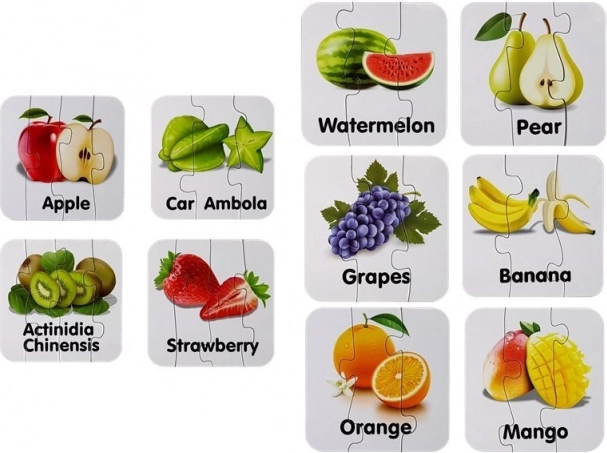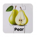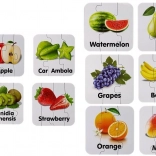 Das Spiel fördert die Hand-Auge-Koordination, logisches Denken und Geduld. Klare Farben und übersichtliche Illustrationen begeistern auf den ersten Blick und wecken Neugier. Aus den Teilen lassen sich bis zu 10 richtige Paare bilden – zum Beispiel Erdbeere, Apfel, Melone, Banane, Mango oder Orange.
