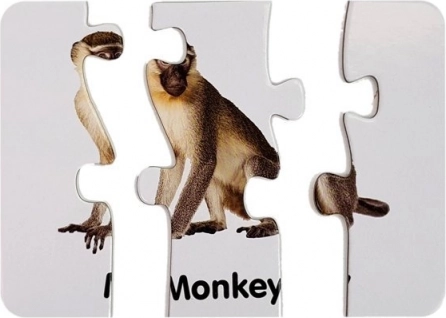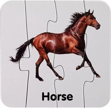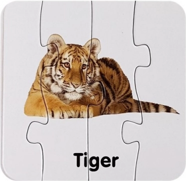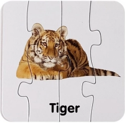 Entdecken Sie eine clevere Möglichkeit, Kinder mit Englisch und der Welt der Tiere vertraut zu machen. Jedes Puzzle-Paar zeigt ein Tier und seinen englischen Namen (z. B. Lion, Giraffe, Elephant), was den Wortschatz auf natürliche Weise erweitert. Dank des Selbstkontroll-Systems erkennen Kinder die richtige Zuordnung selbstständig.