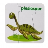Jedes Bild ist mit dem englischen Namen des Dinosauriers versehen. Kinder erweitern spielerisch ihren Wortschatz beim unterhaltsamen Spielen.