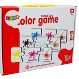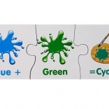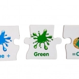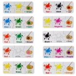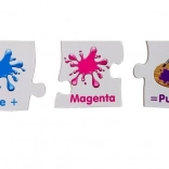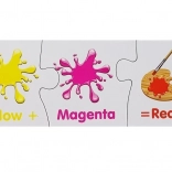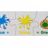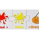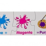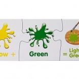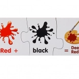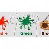 Jedes Minipuzzle zeigt zwei Farben und den entstehenden Farbton. Kinder verstehen schnell die Prinzipien des Mischens und merken sich die Farben besser.