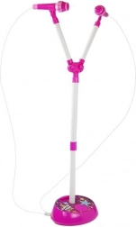 Das Stativ ist höhenverstellbar und erlaubt zudem die Anpassung des Mikrofonwinkels. Für Atmosphäre sorgen LEDs in verschiedenen Farben (Grün, Rot, Gelb, Blau) sowie die Tasten Musik und Applaus für noch größeren Beifall.