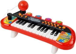Die ideale Wahl für Jungen und Mädchen, die ihr erstes Konzert zu Hause geben möchten. Tasten im rot-schwarzen Design mit bunten Motiven fördern Kreativität, Hörwahrnehmung und Rhythmusgefühl. Dank des beiliegenden Mikrofons kann das Kind gleichzeitig singen und spielen, der USB/MP3-Eingang ermöglicht das Abspielen von Lieblingsliedern – perfekt für Karaoke zu Hause.