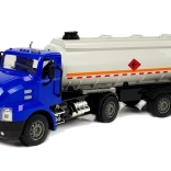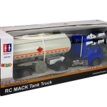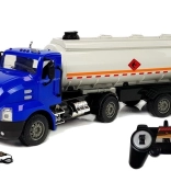 Der blau-weiße Tankwagen wird mit der beiliegenden 2,4G-Fernsteuerung bedient.