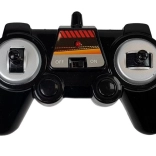 Die Bedienung des R/C-Fernsteuergeräts ist sehr einfach: Zwei Joysticks steuern die Richtungen, zwei Tasten regeln Geschwindigkeit und Sound.