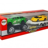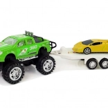 Das Auto mit Anhänger bietet unvergesslichen Spaß für Kinder, die gerne eigene Geschichten kreieren. Ziehen Sie das Geländewagen zurück und beobachten Sie, wie es dank des Aufziehmotors schnell über den Boden fährt. Der Anhänger kann leicht abgenommen werden und alle Fahrzeuge können eigenständig verwendet werden.