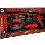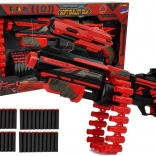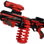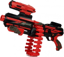 Dieses rot-schwarze Gewehr verwandelt jedes Spiel in unvergesslichen Spaß. Dank des langen Magazins fasst es bis zu 40 Geschosse und ermöglicht schnelles Schießen auf Entfernungen bis zu 45 Metern!