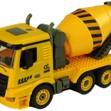 Der gelbe und graue Betonmischer mit rotierendem Mischbehälter und realistischen Reifen versetzt die Kinder direkt auf die Baustelle.