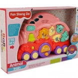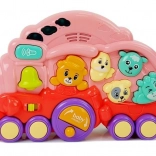 Diese interaktive Lokomotive ist ein ideales Spielzeug für Kinder ab einem Jahr. Drücken Sie eine Taste und hören Sie einen Tierlaut oder eine Melodie. Die Lokomotive ist in Rosa gehalten und mit Figuren wie einem Vogel, Hund, Schaf und Pferd ausgestattet. Bewegliche Räder und anpassbare Lautstärke ermöglichen weitere Interaktionen.