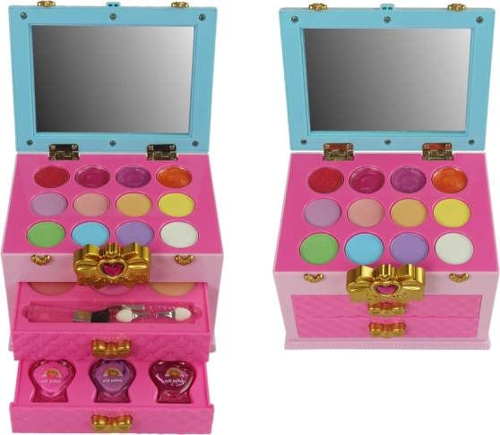 Das Schminktisch-Set ist die Traumwahl für jede kleine Dame, die sich ihren eigenen Ort zum Experimentieren mit Schönheit und zum Erlernen der ersten Schminkgeheimnisse wünscht. Dieser Schminktisch, in Form einer bunten Schmuckschatulle, birgt eine reiche Auswahl an Kosmetik für Spaß, was dem Kind erlaubt, Kreativität und ästhetisches Empfinden zu entwickeln.