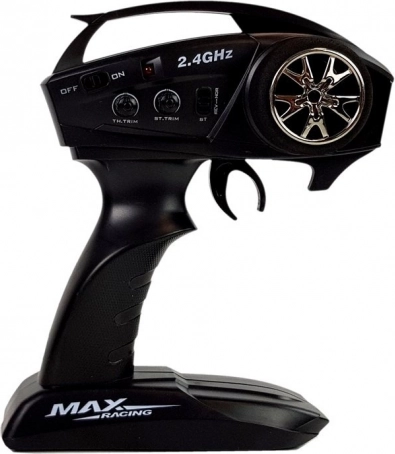 Der Controller arbeitet auf einer Frequenz von 2.4 GHz, was Rennen in Gruppen ohne gegenseitige Störungen ermöglicht. Er verfügt über eine Vielzahl von Funktionen, einschließlich Rückwärtsgang, Einstellung der Lenkräder und Geschwindigkeitsregelung, was den Fahrspaß erhöht.