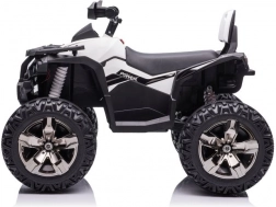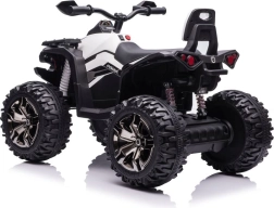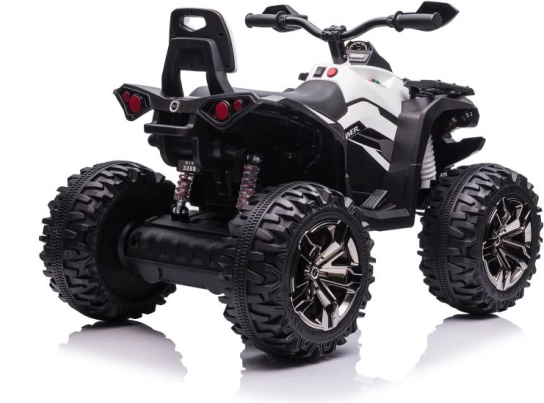 Das Quad ist mit großen robusten Reifen ausgestattet, die Stabilität und Sicherheit auf unebenem Gelände bieten.