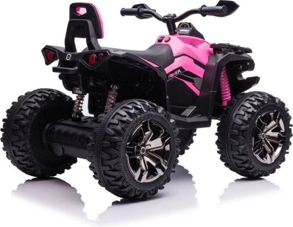 Dieses rosa elektrische Kinder‑Quad ist der ideale Begleiter für Garten und Park. Dank des robusten Fahrwerks, der breiten Reifen mit ausgeprägtem Profil und des bequemen Sitzes meistert es unebenes Gelände mühelos. Realistische Details wie LED‑Lichter und der sportliche Look verstärken das Fahrerlebnis.