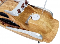 Der einteilige Kunststoffrumpf sorgt für zuverlässige Wasserdichtigkeit, sodass Sie sich ganz aufs Fahren konzentrieren können. Zwei leistungsstarke Motoren verleihen dem Boot Dynamik für schnelle Starts und wendige Manöver. Die Fernsteuerung im Steuerrad-Design arbeitet auf 27 MHz und bietet mit ausziehbarer Antenne eine sichere Reichweite von bis zu 40 m.