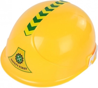 Zum Set gehört ein stylischer gelber Helm, mit dem sich jeder kleine Baumeister wie auf einer echten Baustelle fühlt – für noch realistischeres Spiel.