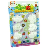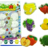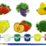 6 Gipsabdrücke mit Obstmotiven, 6 Farben, 1 Pinsel
