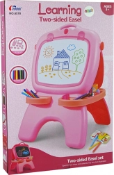 Entdecken Sie die beidseitige Magnet- und Kreidetafel, die Kreativität und Lernen fördert. Die weiße Seite ist für abwischbare Marker, die schwarze für Kreide. Inklusive 12 Markern und 12 Kreiden, Form- und Buchstabenschablonen, Leuchtstift, praktischem Schubfach für Zubehör und Papierhalter. Kompakte Maße 64×44×30 cm. Geeignet ab 3 Jahren, erfüllt EN71 und CE.
