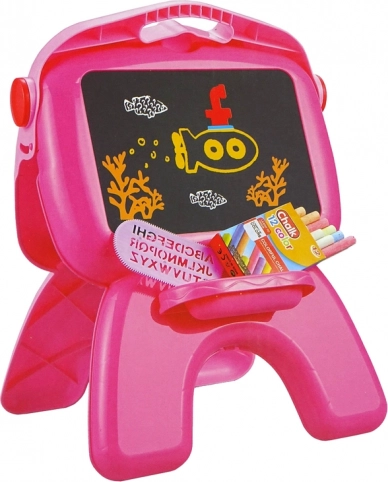 Diese sorgfältig verarbeitete, freistehende Tafel bietet zwei Zeichenflächen – eine weiße für Trockenabwischmarker und eine schwarze für Kreide. Oben ist ein Projektor angebracht, der Tiere und Figuren zum einfachen Nachzeichnen projiziert. In den praktischen Schubfächern verstauen Sie Marker, Kreiden und Schablonen. Ideal fürs Kinderzimmer und den täglichen Bastelspaß.