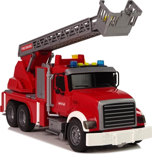 Weitere Funktionen wie Sound- und Lichteffekte verleihen dem Spiel zusätzlichen Effekt und Realismus. Die Warnhörner oben signalisieren die Fahrt, die Tasten oben sind für die Geräusche zuständig – Hupe, Motorstart, Signal. Dank der roten Farbgebung ist das Auto schon aus der Ferne sichtbar. Das Feuerwehrfahrzeug verfügt über einen Reibungsantrieb auf der Hinterachse (Push-Pull): einfach hinten andrücken, nach vorne loslassen und die Geschwindigkeit genießen.