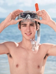 Der obere Teil des Schnorchels ist mit Trockentop-Technologie ausgestattet, die das Eindringen von Wasser bei Wellen oder unbeabsichtigtem Untertauchen reduziert.